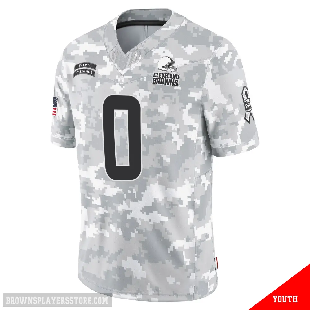 Display your Browns spirit year-round with this #0 Youth Wesley French Arctic Camo Limited Cleveland Browns 2024 Salute to Service Jersey. Whether you're in the crowd or lounging at home, it's the ideal way to showcase your love for Browns.
