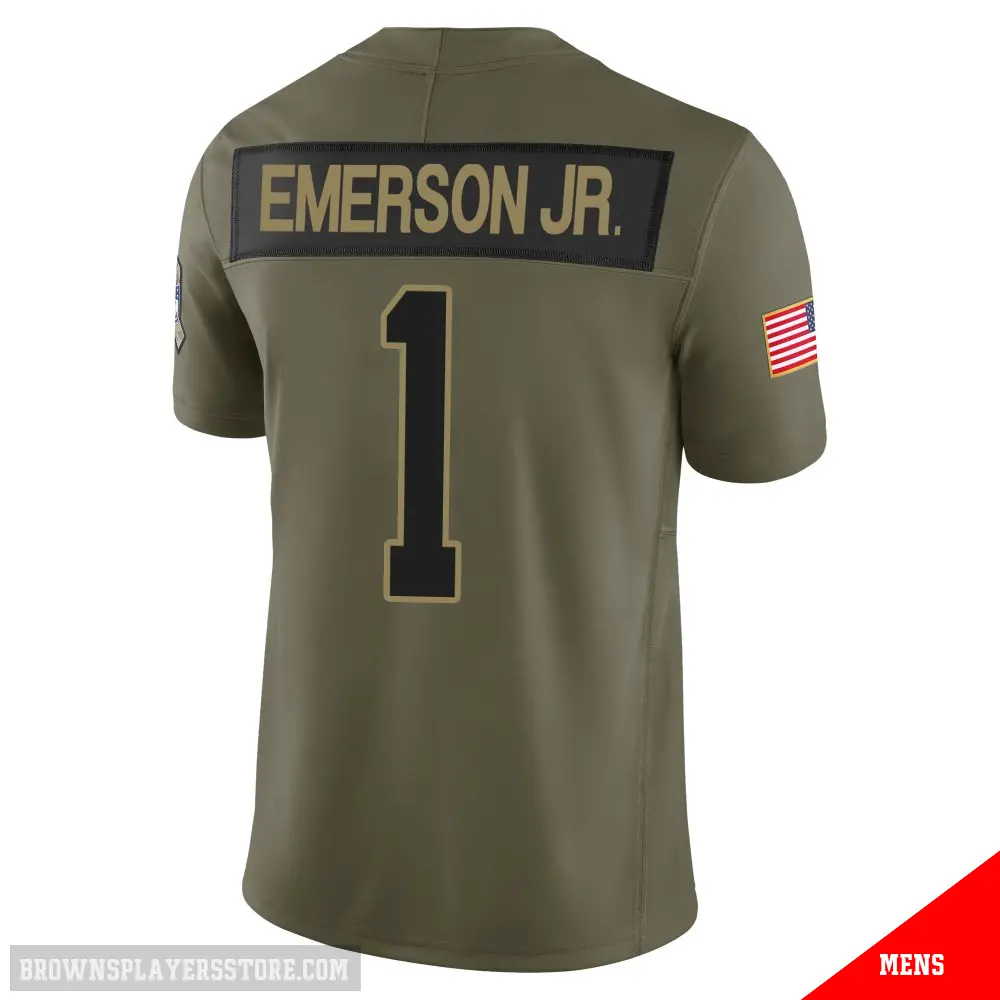 Display your Browns spirit year-round with this #1 Men's Martin Emerson Jr. Olive Limited Cleveland Browns 2025 Salute to Service Jersey. Whether you're in the crowd or lounging at home, it's the ideal way to showcase your love for Browns.