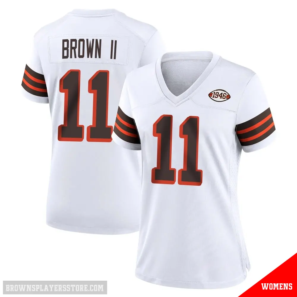 >Tony Brown II Jersey>#11 Women's Tony Brown II White Game Cleveland Browns 1946 Collection Alternate Jersey