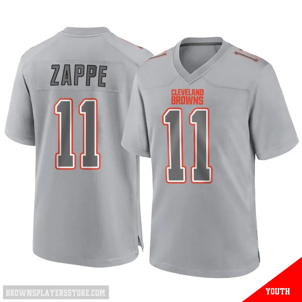 >Bailey Zappe Jersey>#11 Youth Bailey Zappe Gray Game Cleveland Browns Atmosphere Fashion Jersey