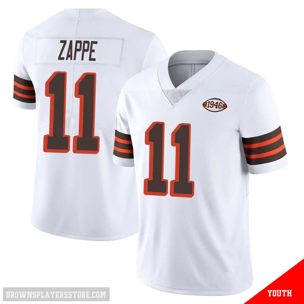 Display your Browns spirit year-round with this #11 Youth Bailey Zappe White Limited Cleveland Browns Vapor 1946 Collection Alternate Jersey. Whether you're in the crowd or lounging at home, it's the ideal way to showcase your love for Browns.