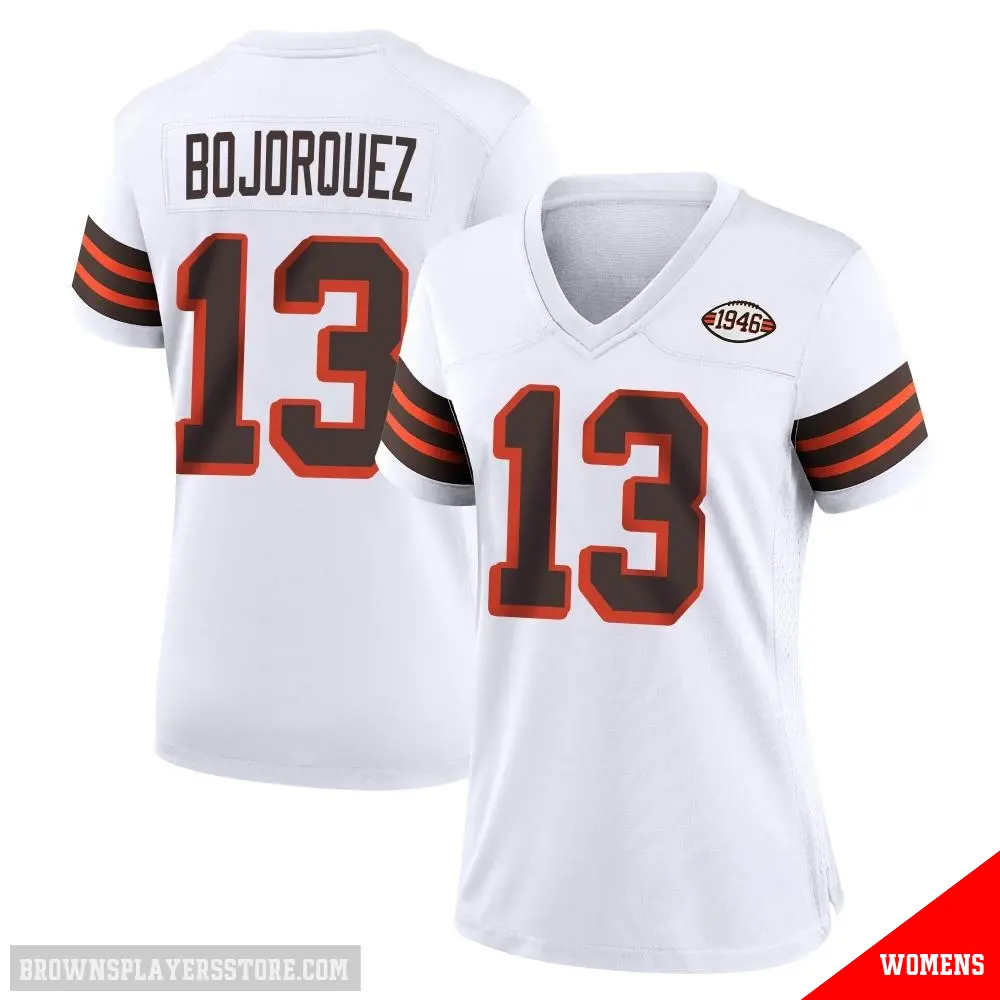Display your Browns spirit year-round with this #13 Women's Corey Bojorquez White Game Cleveland Browns 1946 Collection Alternate Jersey. Whether you're in the crowd or lounging at home, it's the ideal way to showcase your love for Browns.