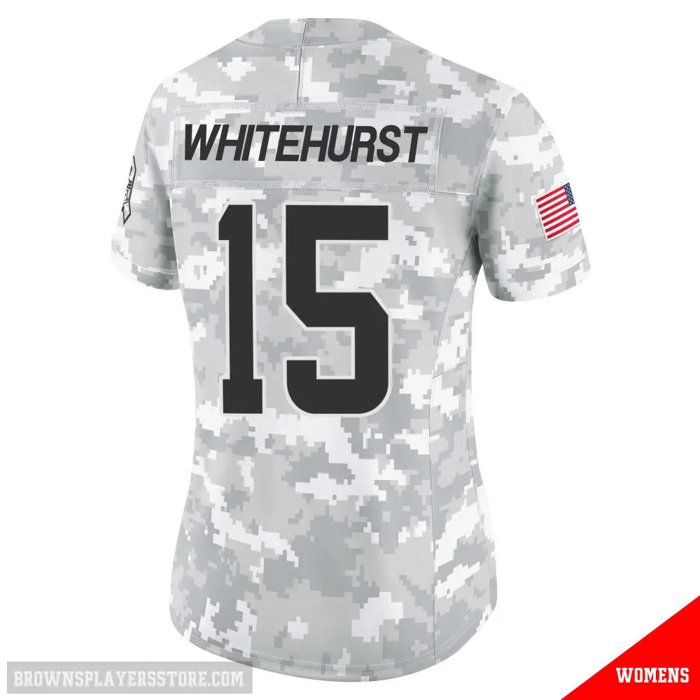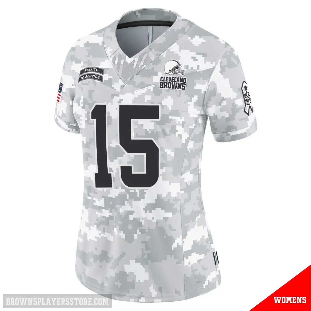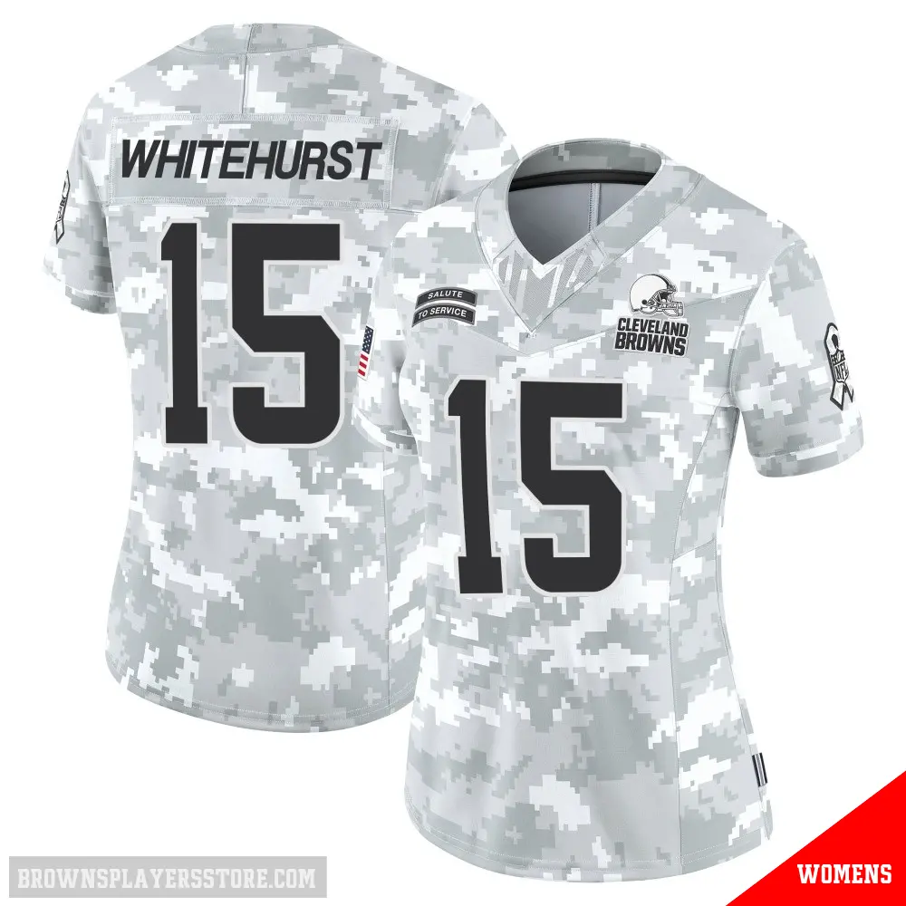 Display your Browns spirit year-round with this #15 Women's Charlie Whitehurst Arctic Camo Limited Cleveland Browns 2024 Salute to Service Jersey. Whether you're in the crowd or lounging at home, it's the ideal way to showcase your love for Browns.