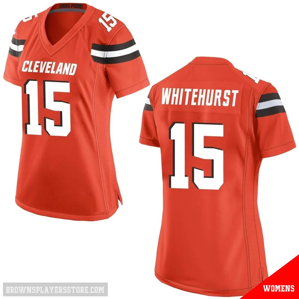 Display your Browns spirit year-round with this #15 Women's Charlie Whitehurst Orange Game Cleveland Browns Alternate Jersey. Whether you're in the crowd or lounging at home, it's the ideal way to showcase your love for Browns.