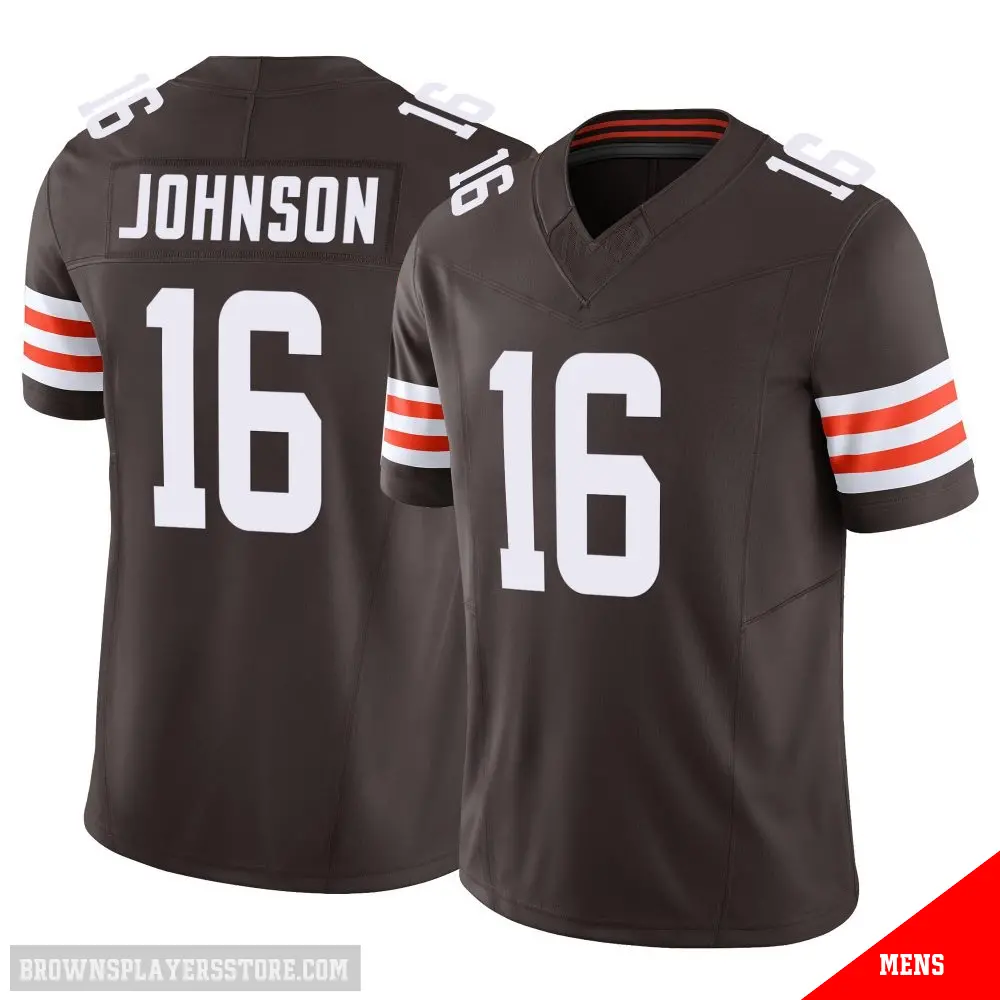 Display your Browns spirit year-round with this #16 Men's Diontae Johnson Brown Limited Cleveland Browns Vapor F.U.S.E. Jersey. Whether you're in the crowd or lounging at home, it's the ideal way to showcase your love for Browns.