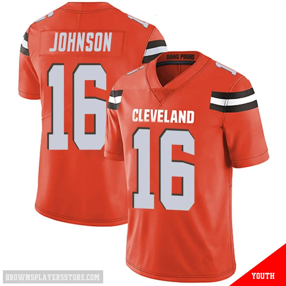 Display your Browns spirit year-round with this #16 Youth Diontae Johnson Orange Limited Cleveland Browns Alternate Vapor Untouchable Jersey. Whether you're in the crowd or lounging at home, it's the ideal way to showcase your love for Browns.