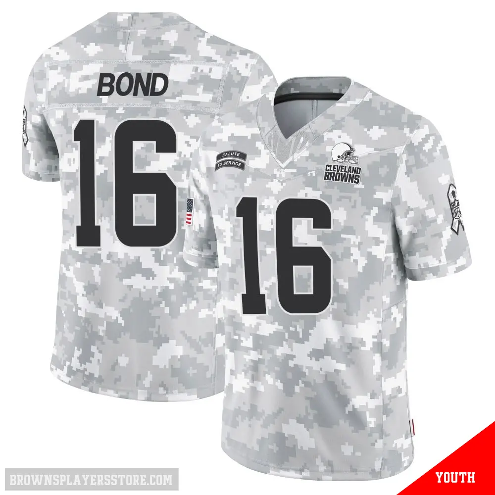 Display your Browns spirit year-round with this #16 Youth Isaiah Bond Arctic Camo Limited Cleveland Browns 2024 Salute to Service Jersey. Whether you're in the crowd or lounging at home, it's the ideal way to showcase your love for Browns.