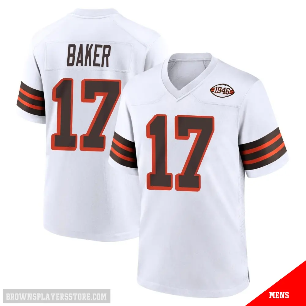 Display your Browns spirit year-round with this #17 Men's Jerome Baker White Game Cleveland Browns 1946 Collection Alternate Jersey. Whether you're in the crowd or lounging at home, it's the ideal way to showcase your love for Browns.