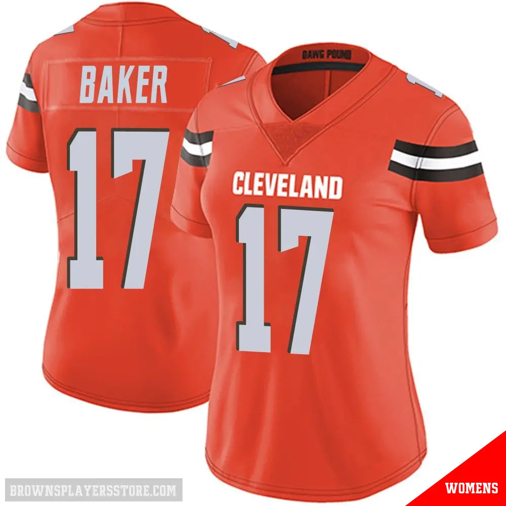 Display your Browns spirit year-round with this #17 Women's Jerome Baker Orange Limited Cleveland Browns Alternate Vapor Untouchable Jersey. Whether you're in the crowd or lounging at home, it's the ideal way to showcase your love for Browns.