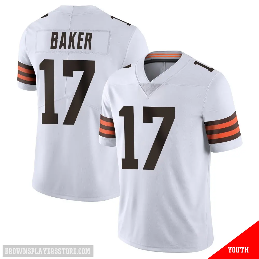 Display your Browns spirit year-round with this #17 Youth Jerome Baker White Limited Cleveland Browns Vapor Untouchable Jersey. Whether you're in the crowd or lounging at home, it's the ideal way to showcase your love for Browns.