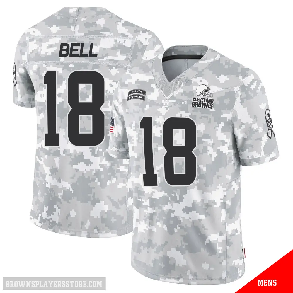Display your Browns spirit year-round with this #18 Men's David Bell Arctic Camo Limited Cleveland Browns 2024 Salute to Service Jersey. Whether you're in the crowd or lounging at home, it's the ideal way to showcase your love for Browns.