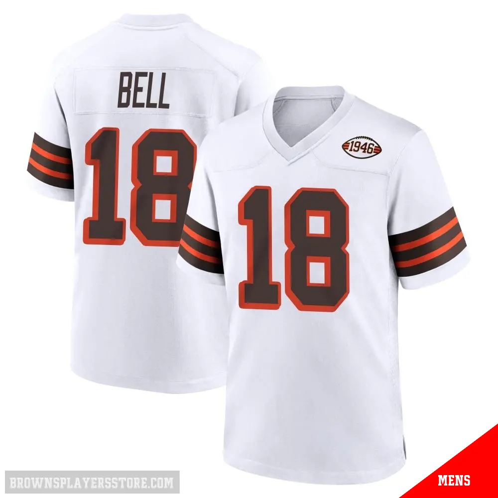 Display your Browns spirit year-round with this #18 Men's David Bell White Game Cleveland Browns 1946 Collection Alternate Jersey. Whether you're in the crowd or lounging at home, it's the ideal way to showcase your love for Browns.