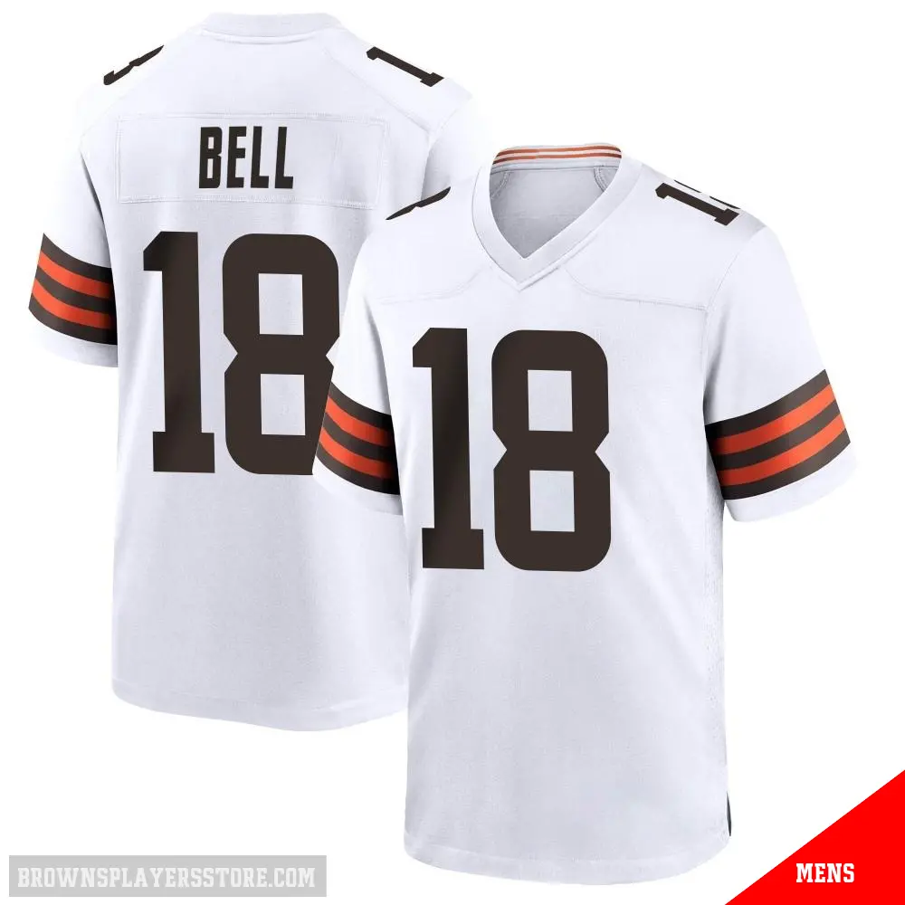 >David Bell Jersey>#18 Men's David Bell White Game Cleveland Browns Jersey