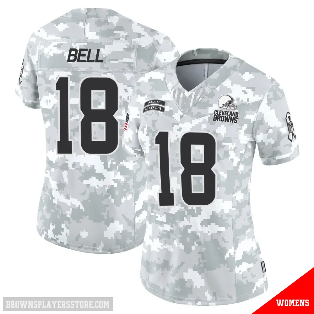 Display your Browns spirit year-round with this #18 Women's David Bell Arctic Camo Limited Cleveland Browns 2024 Salute to Service Jersey. Whether you're in the crowd or lounging at home, it's the ideal way to showcase your love for Browns.
