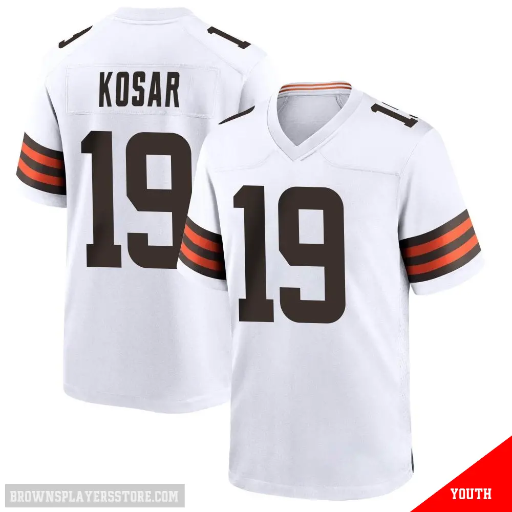 #19 Youth Bernie Kosar White Game Cleveland Browns Jersey