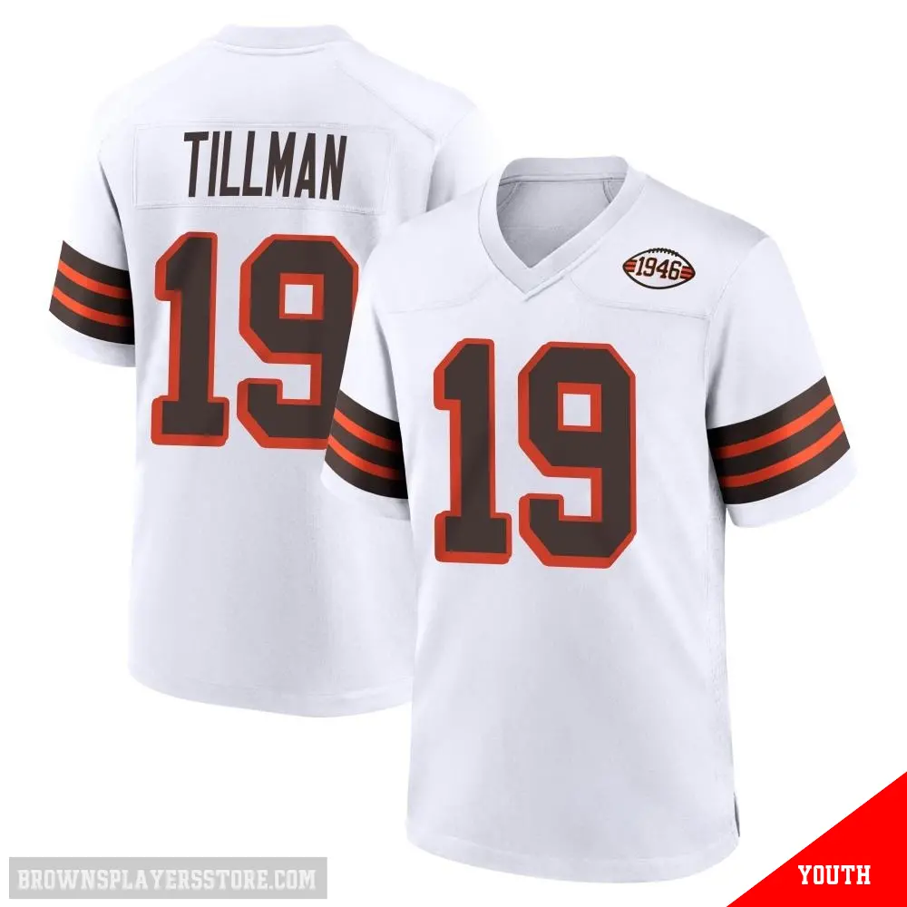 >Cedric Tillman Jersey>#19 Youth Cedric Tillman White Game Cleveland Browns 1946 Collection Alternate Jersey