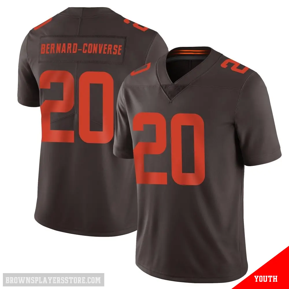 Display your Browns spirit year-round with this #20 Youth Jarrick Bernard-Converse Brown Limited Cleveland Browns Vapor Alternate Jersey. Whether you're in the crowd or lounging at home, it's the ideal way to showcase your love for Browns.