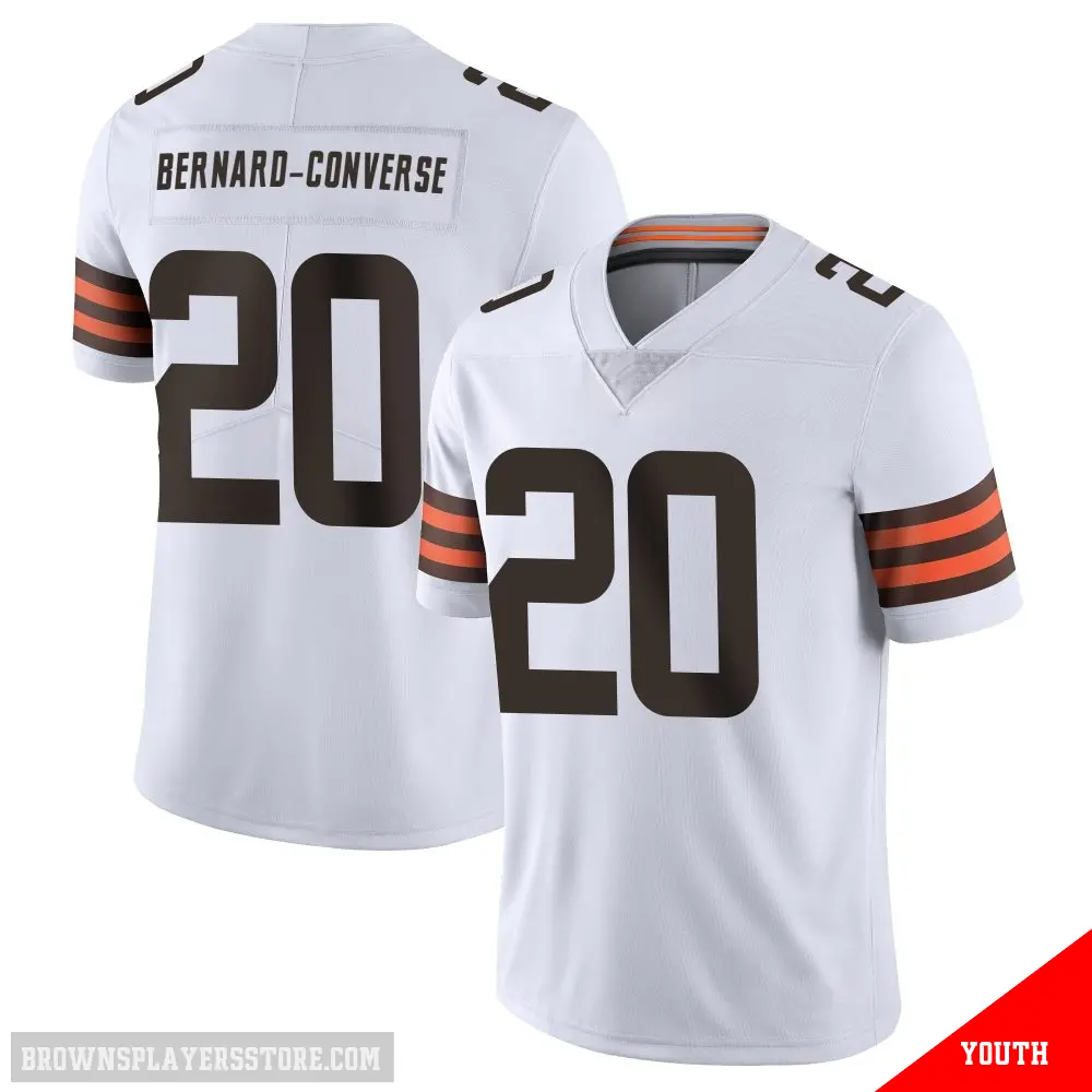 Display your Browns spirit year-round with this #20 Youth Jarrick Bernard-Converse White Limited Cleveland Browns Vapor Untouchable Jersey. Whether you're in the crowd or lounging at home, it's the ideal way to showcase your love for Browns.