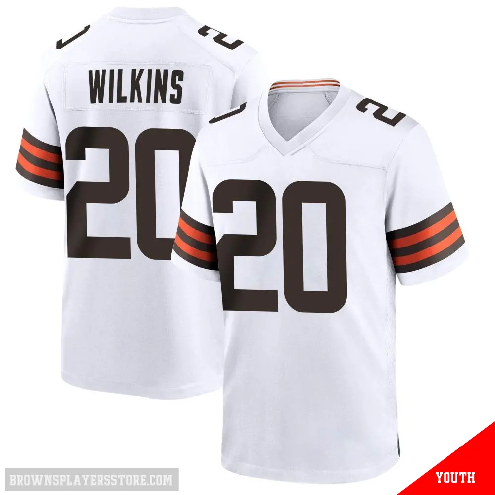#20 Youth Jordan Wilkins White Game Cleveland Browns Jersey