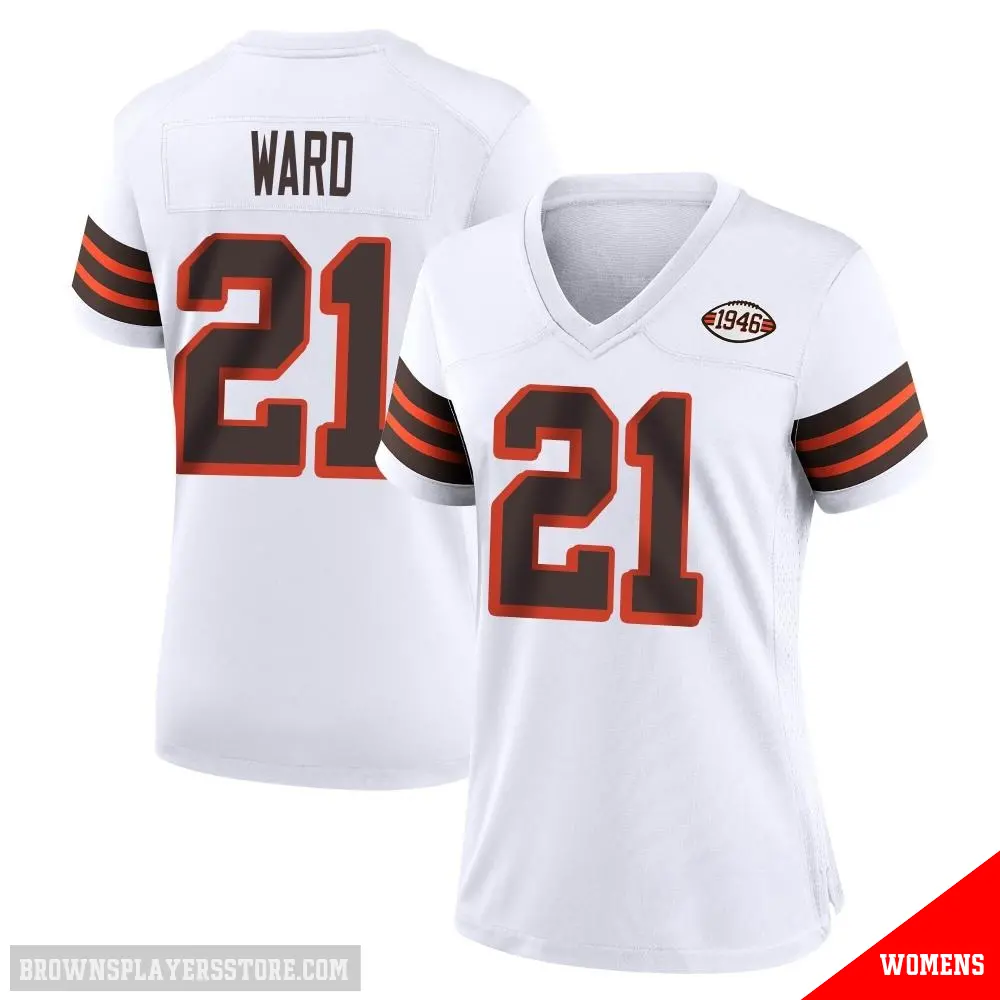 #21 Women's Denzel Ward White Game Cleveland Browns 1946 Collection Alternate Jersey