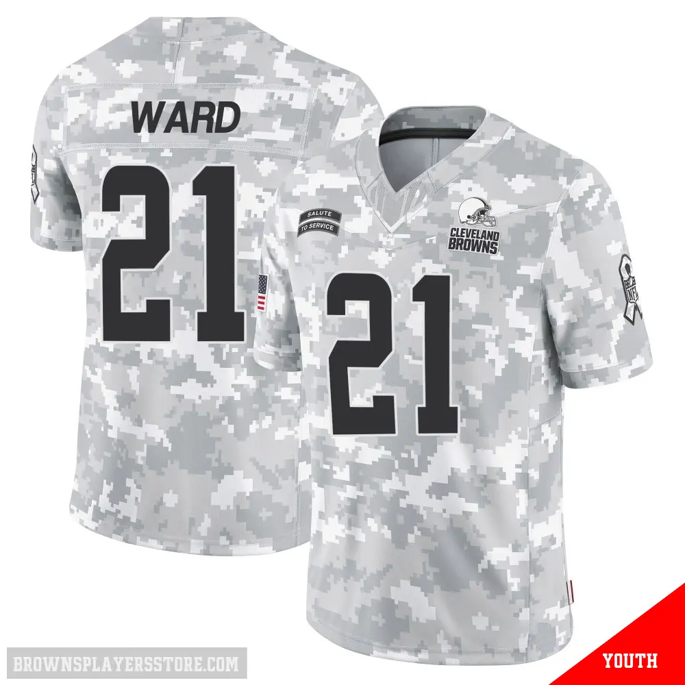 Display your Browns spirit year-round with this #21 Youth Denzel Ward Arctic Camo Limited Cleveland Browns 2024 Salute to Service Jersey. Whether you're in the crowd or lounging at home, it's the ideal way to showcase your love for Browns.