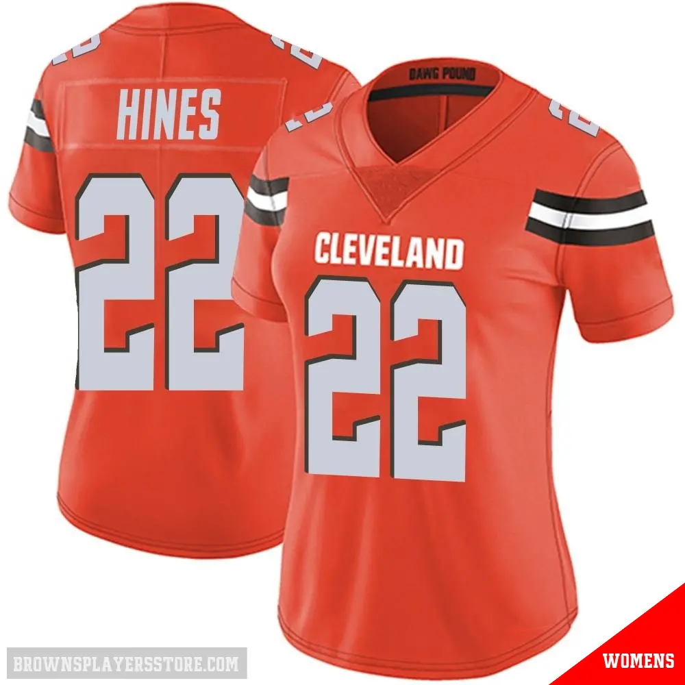 Display your Browns spirit year-round with this #22 Women's Nyheim Hines Orange Limited Cleveland Browns Alternate Vapor Untouchable Jersey. Whether you're in the crowd or lounging at home, it's the ideal way to showcase your love for Browns.