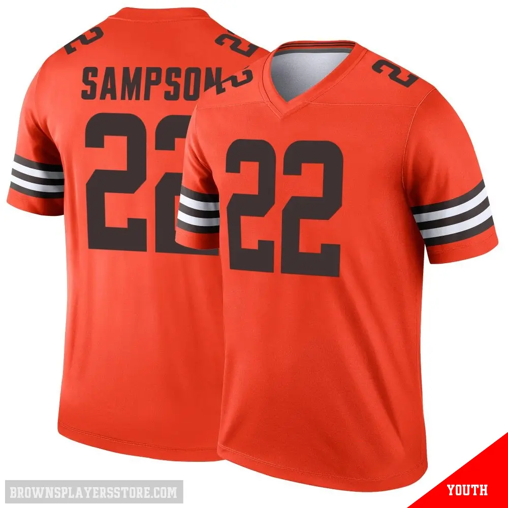 Display your Browns spirit year-round with this #22 Youth Dylan Sampson Orange Legend Cleveland Browns Inverted Jersey. Whether you're in the crowd or lounging at home, it's the ideal way to showcase your love for Browns.