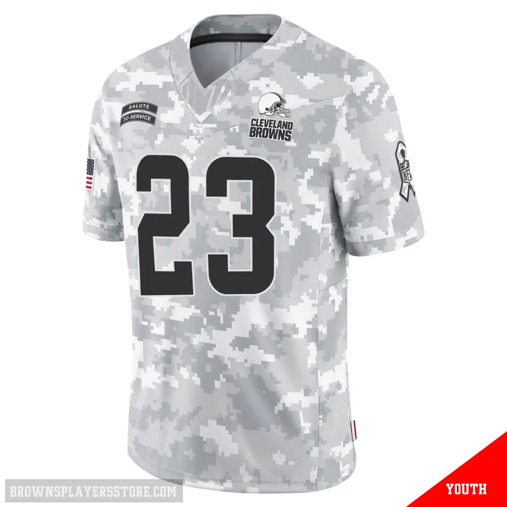 Display your Browns spirit year-round with this #23 Youth Damontae Kazee Arctic Camo Limited Cleveland Browns 2024 Salute to Service Jersey. Whether you're in the crowd or lounging at home, it's the ideal way to showcase your love for Browns.