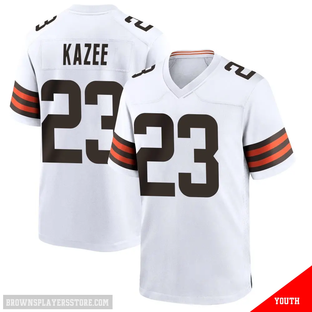 #23 Youth Damontae Kazee White Game Cleveland Browns Jersey