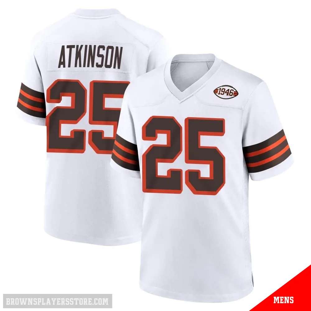 #25 Men's George Atkinson White Game Cleveland Browns 1946 Collection Alternate Jersey