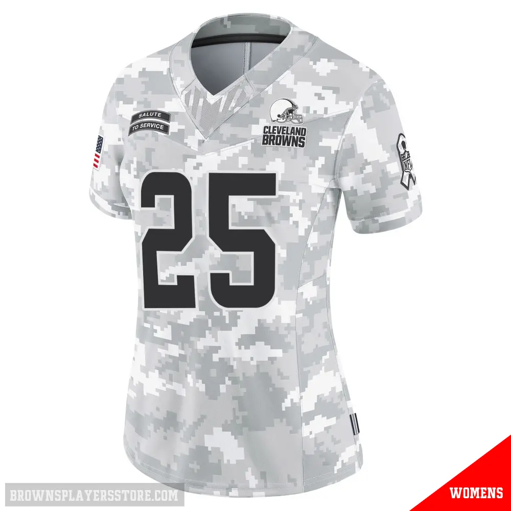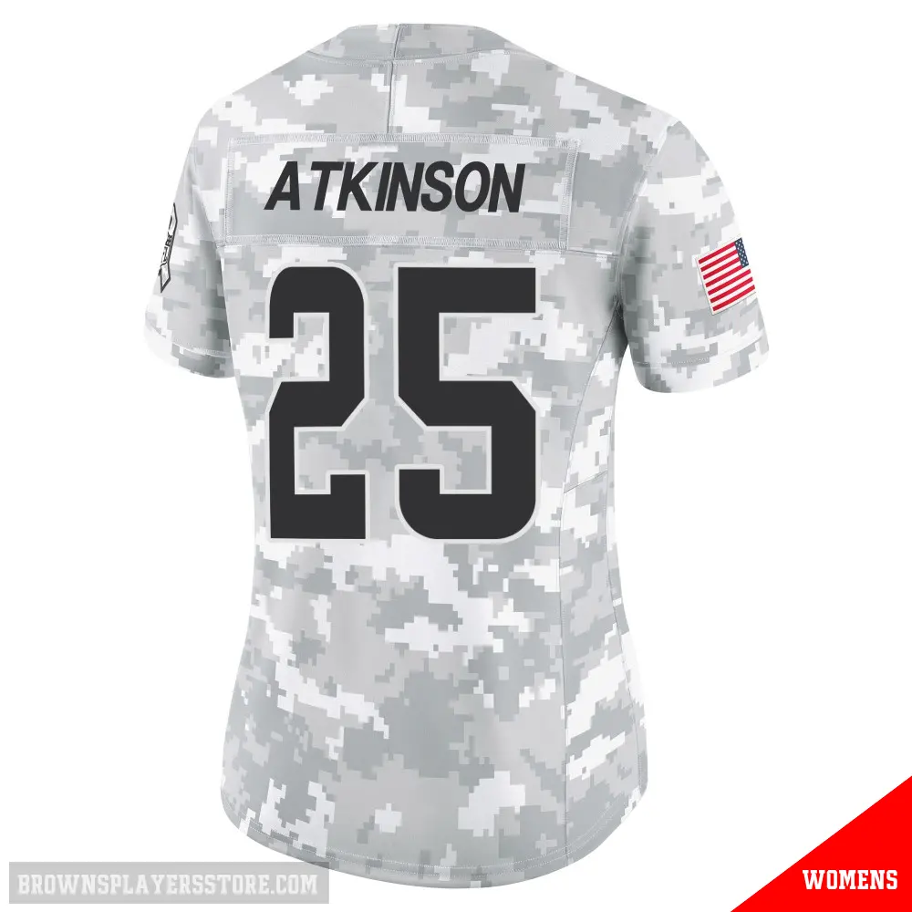 Display your Browns spirit year-round with this #25 Women's George Atkinson Arctic Camo Limited Cleveland Browns 2024 Salute to Service Jersey. Whether you're in the crowd or lounging at home, it's the ideal way to showcase your love for Browns.