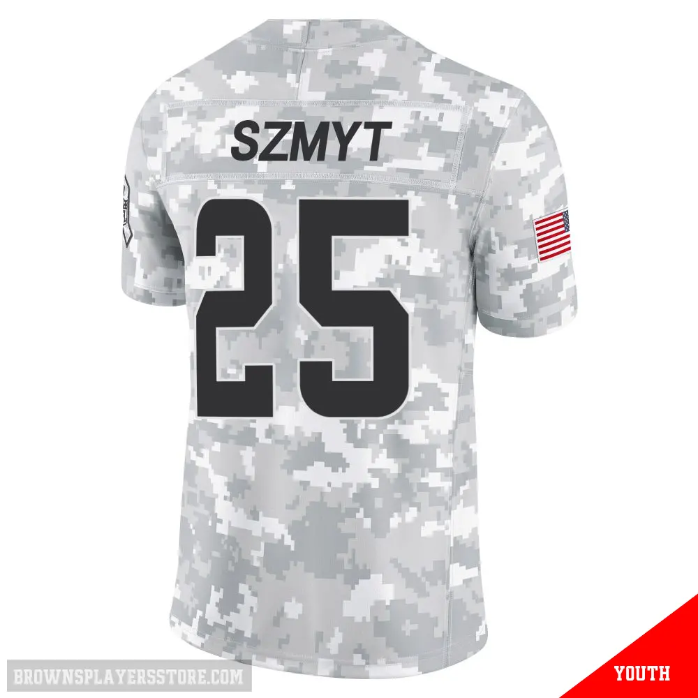 Display your Browns spirit year-round with this #25 Youth Andre Szmyt Arctic Camo Limited Cleveland Browns 2024 Salute to Service Jersey. Whether you're in the crowd or lounging at home, it's the ideal way to showcase your love for Browns.