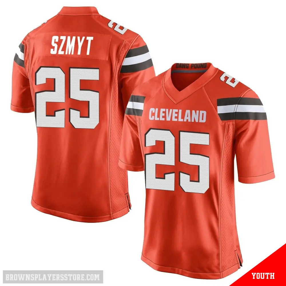 Display your Browns spirit year-round with this #25 Youth Andre Szmyt Orange Game Cleveland Browns Alternate Jersey. Whether you're in the crowd or lounging at home, it's the ideal way to showcase your love for Browns.