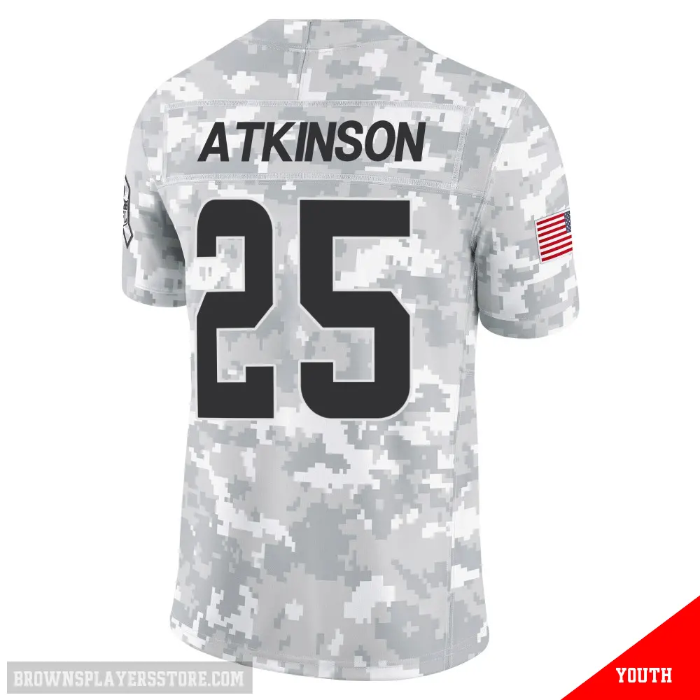 Display your Browns spirit year-round with this #25 Youth George Atkinson Arctic Camo Limited Cleveland Browns 2024 Salute to Service Jersey. Whether you're in the crowd or lounging at home, it's the ideal way to showcase your love for Browns.