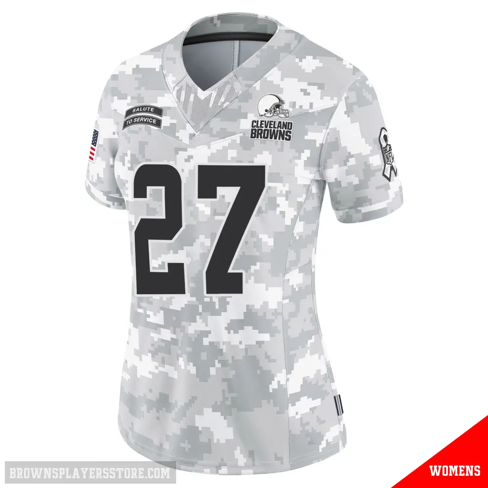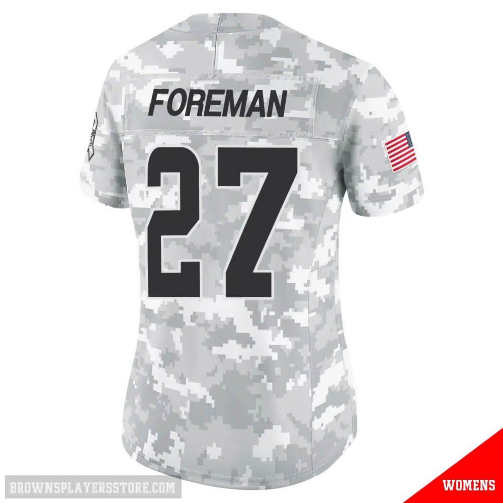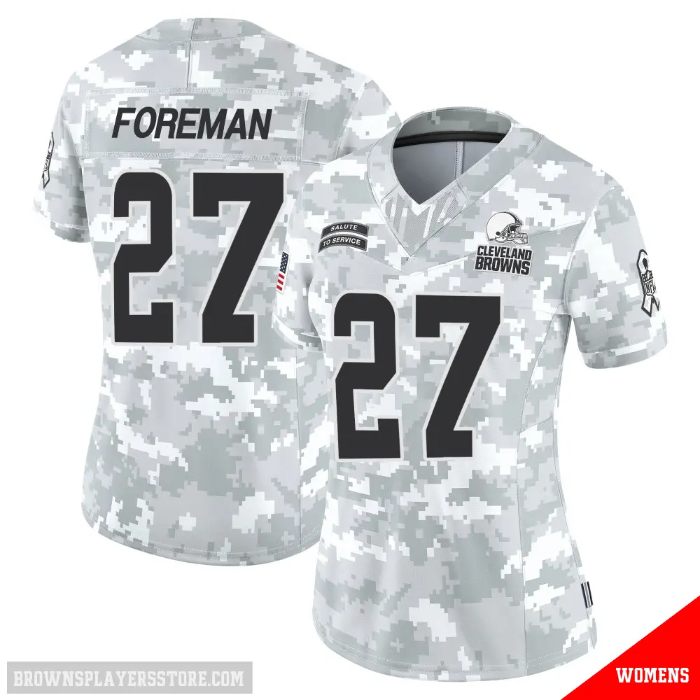 Display your Browns spirit year-round with this #27 Women's D'Onta Foreman Arctic Camo Limited Cleveland Browns 2024 Salute to Service Jersey. Whether you're in the crowd or lounging at home, it's the ideal way to showcase your love for Browns.