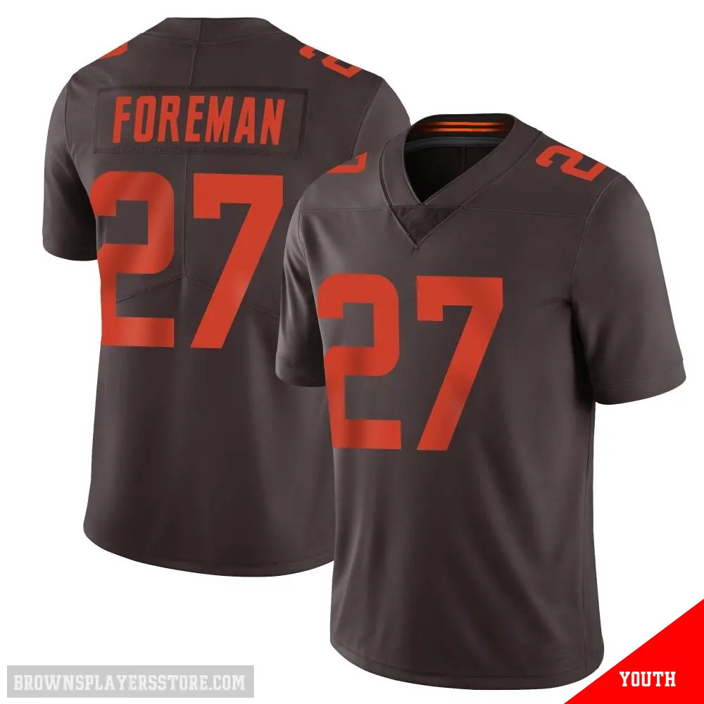Display your Browns spirit year-round with this #27 Youth D'Onta Foreman Brown Limited Cleveland Browns Vapor Alternate Jersey. Whether you're in the crowd or lounging at home, it's the ideal way to showcase your love for Browns.