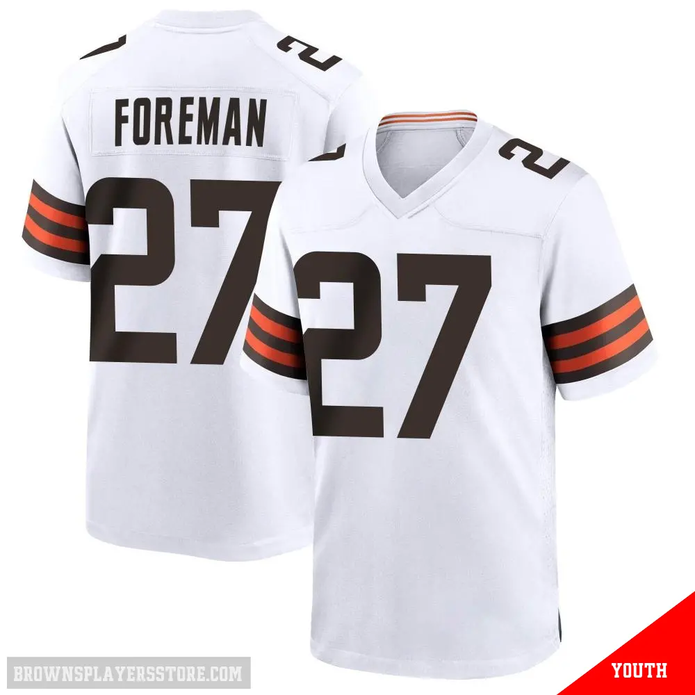 #27 Youth D'Onta Foreman White Game Cleveland Browns Jersey