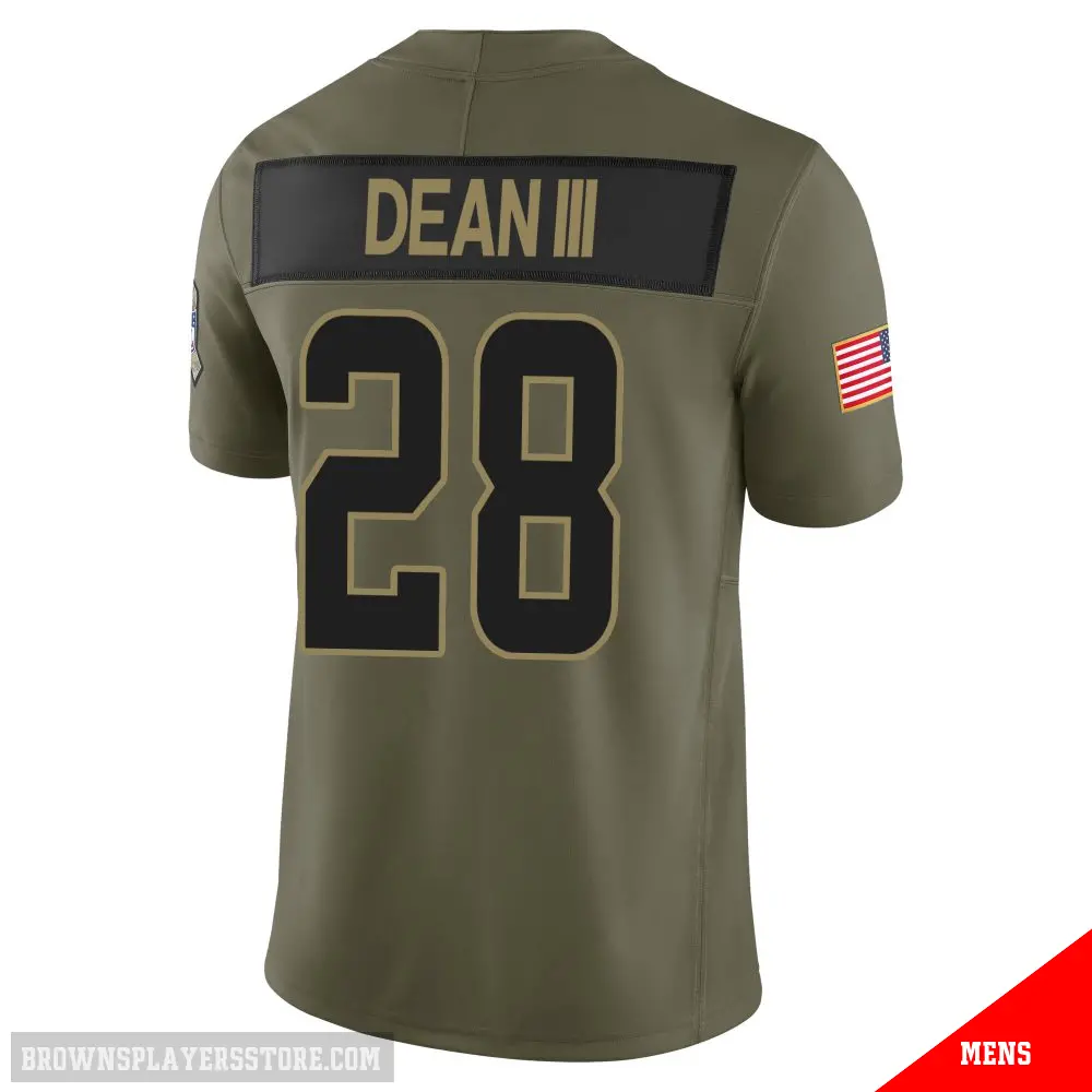 #28 Men's Trey Dean III Olive Limited Cleveland Browns 2025 Salute to Service Jersey