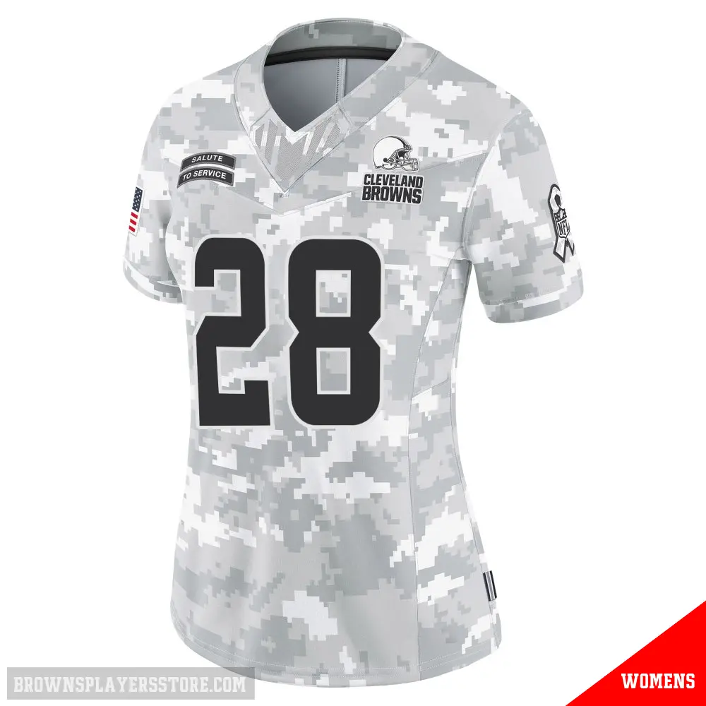 Display your Browns spirit year-round with this #28 Women's Trey Dean III Arctic Camo Limited Cleveland Browns 2024 Salute to Service Jersey. Whether you're in the crowd or lounging at home, it's the ideal way to showcase your love for Browns.