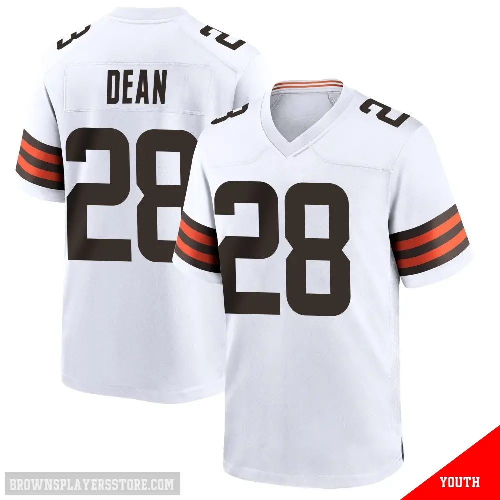 Display your Browns spirit year-round with this #28 Youth Trey Dean III White Game Cleveland Browns Jersey. Whether you're in the crowd or lounging at home, it's the ideal way to showcase your love for Browns.