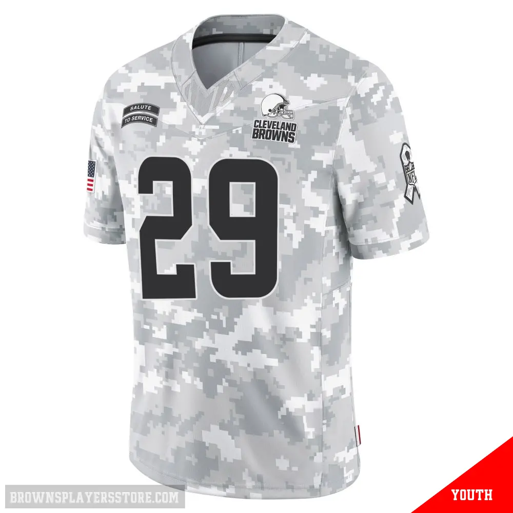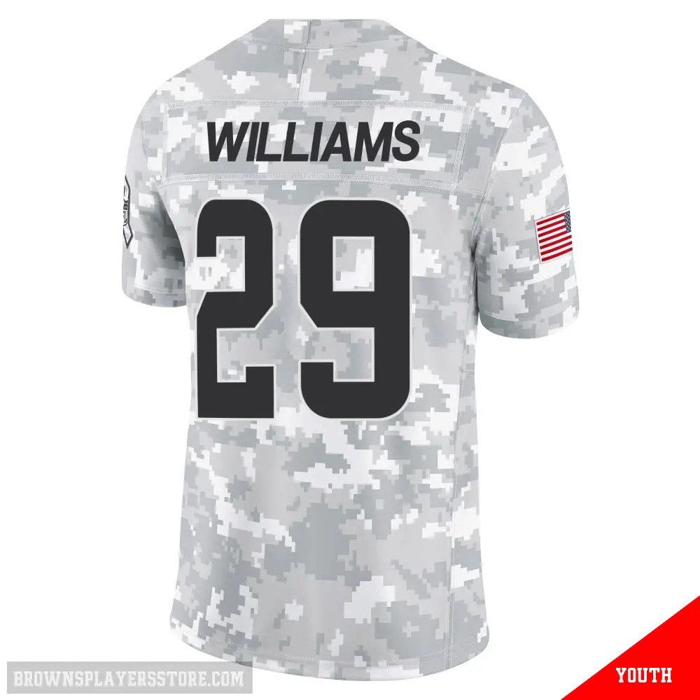Display your Browns spirit year-round with this #29 Youth Dee Williams Arctic Camo Limited Cleveland Browns 2024 Salute to Service Jersey. Whether you're in the crowd or lounging at home, it's the ideal way to showcase your love for Browns.