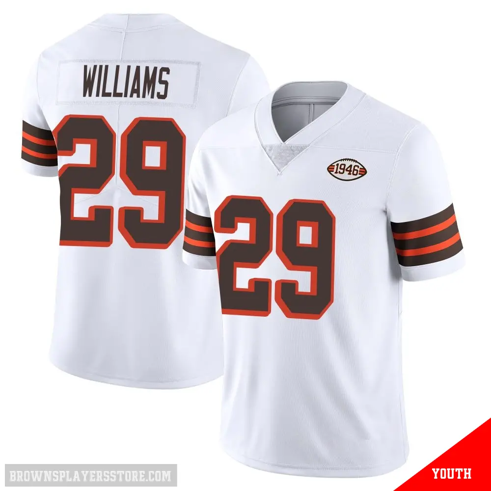Display your Browns spirit year-round with this #29 Youth Dee Williams White Limited Cleveland Browns Vapor 1946 Collection Alternate Jersey. Whether you're in the crowd or lounging at home, it's the ideal way to showcase your love for Browns.