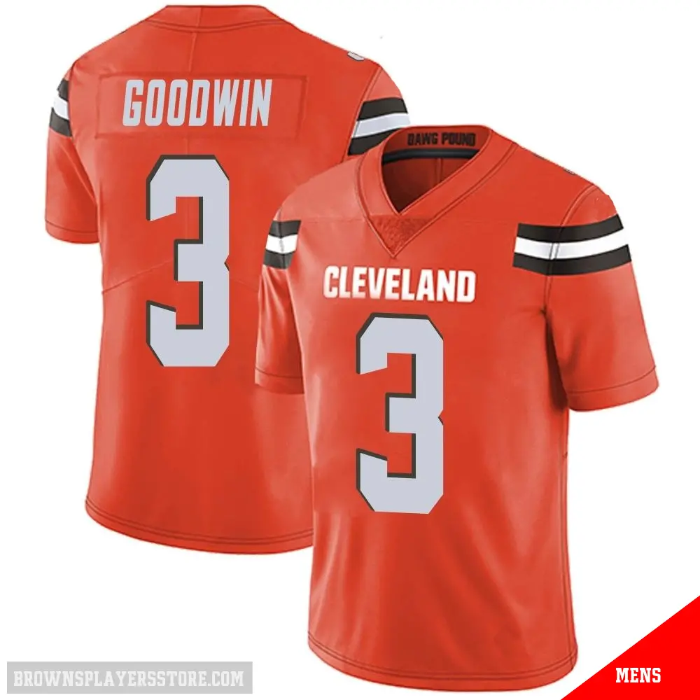 Display your Browns spirit year-round with this #3 Men's Marquise Goodwin Orange Limited Cleveland Browns Alternate Vapor Untouchable Jersey. Whether you're in the crowd or lounging at home, it's the ideal way to showcase your love for Browns.