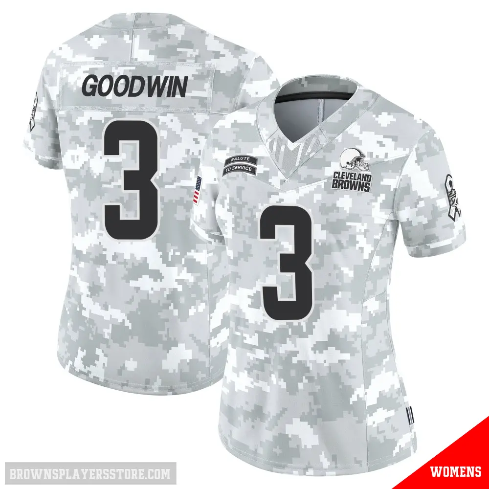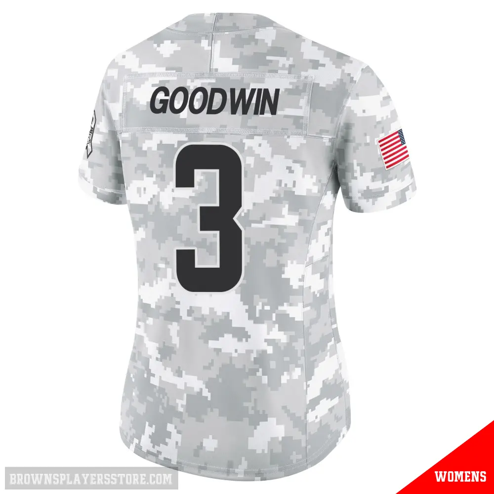 Display your Browns spirit year-round with this #3 Women's Marquise Goodwin Arctic Camo Limited Cleveland Browns 2024 Salute to Service Jersey. Whether you're in the crowd or lounging at home, it's the ideal way to showcase your love for Browns.