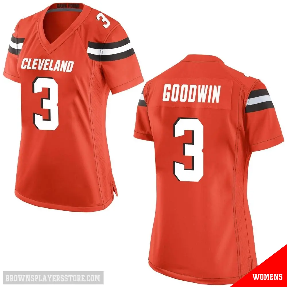 Display your Browns spirit year-round with this #3 Women's Marquise Goodwin Orange Game Cleveland Browns Alternate Jersey. Whether you're in the crowd or lounging at home, it's the ideal way to showcase your love for Browns.