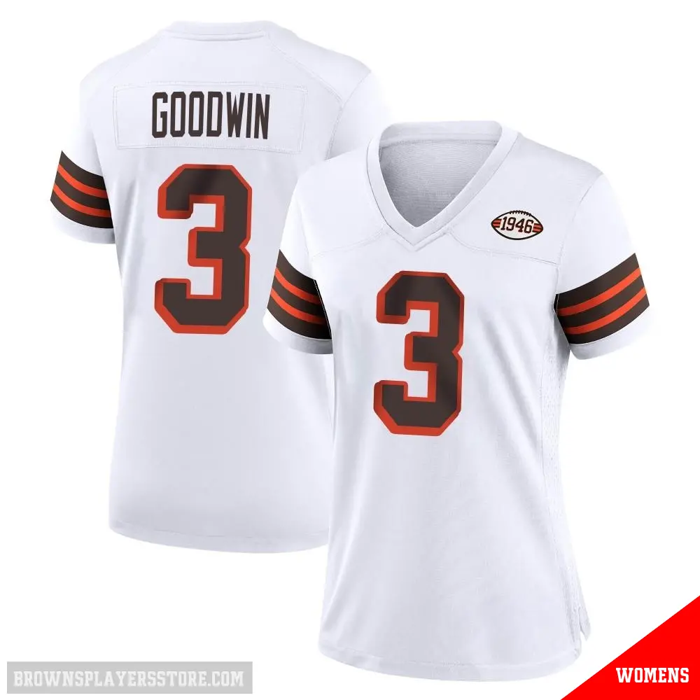 Display your Browns spirit year-round with this #3 Women's Marquise Goodwin White Game Cleveland Browns 1946 Collection Alternate Jersey. Whether you're in the crowd or lounging at home, it's the ideal way to showcase your love for Browns.