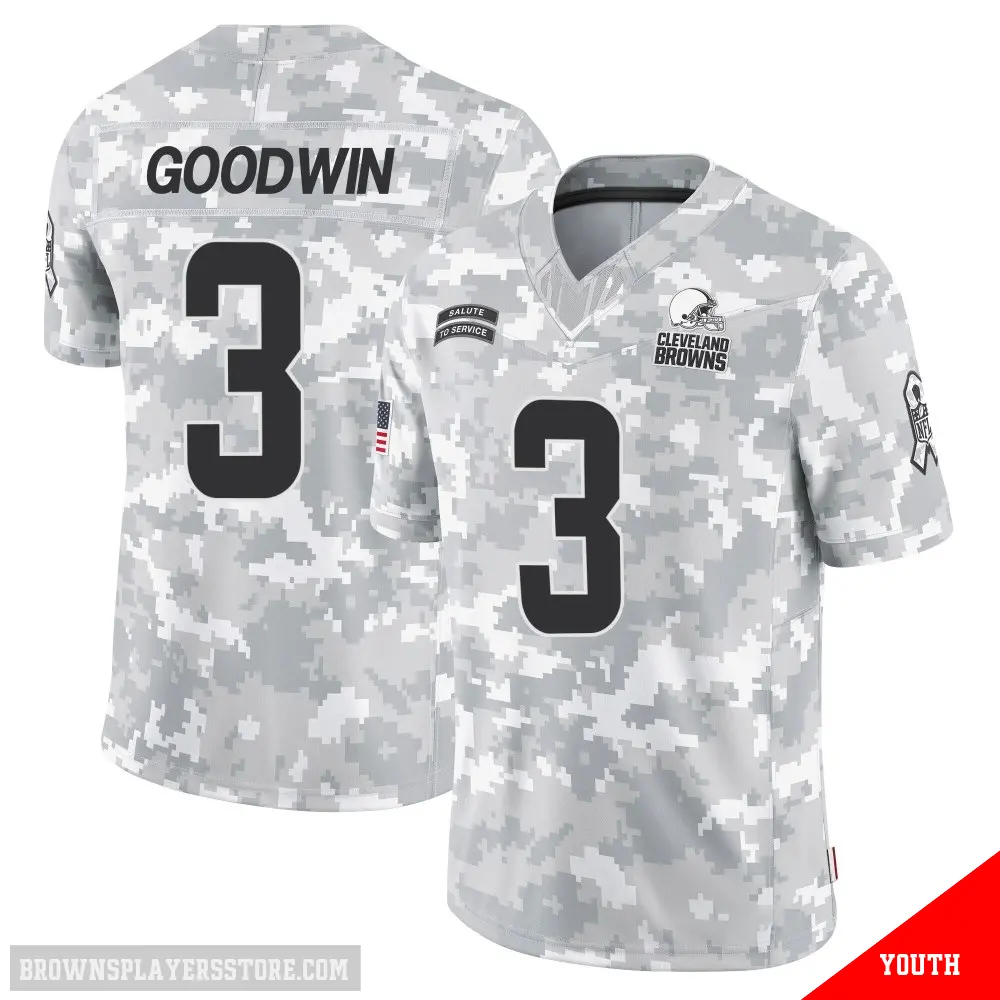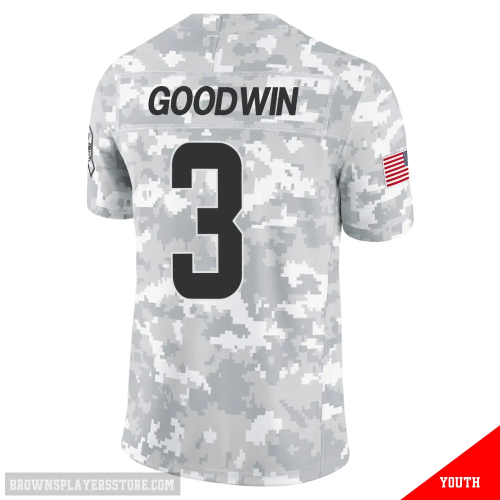 Display your Browns spirit year-round with this #3 Youth Marquise Goodwin Arctic Camo Limited Cleveland Browns 2024 Salute to Service Jersey. Whether you're in the crowd or lounging at home, it's the ideal way to showcase your love for Browns.