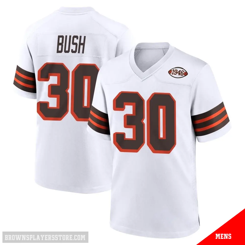 #30 Men's Devin Bush White Game Cleveland Browns 1946 Collection Alternate Jersey