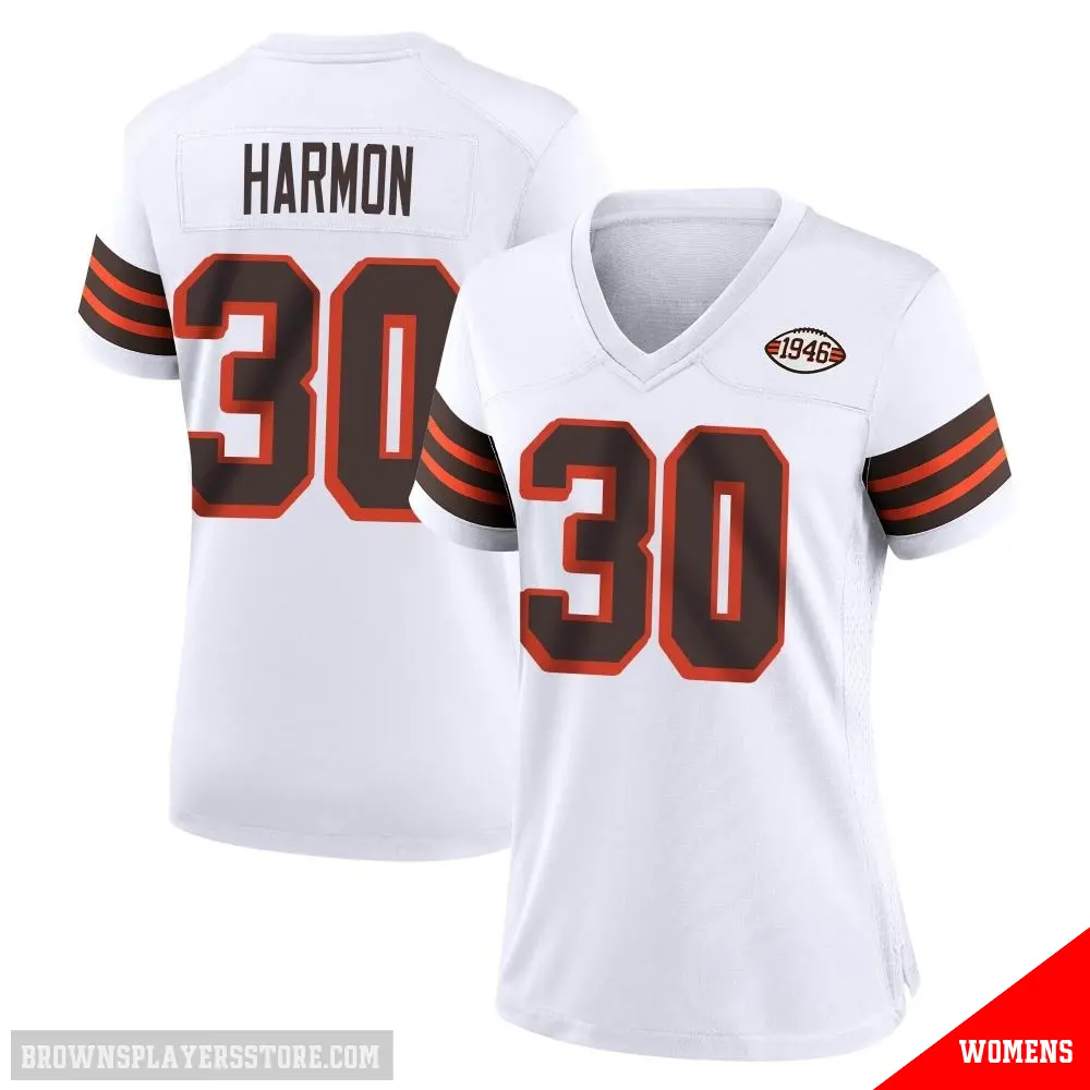 #30 Women's Duron Harmon White Game Cleveland Browns 1946 Collection Alternate Jersey