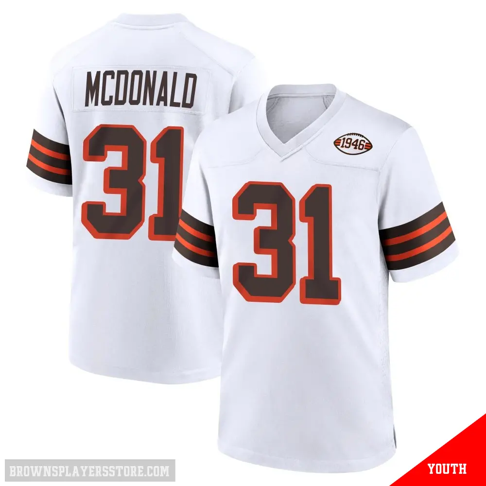 #31 Youth Cade McDonald White Game Cleveland Browns 1946 Collection Alternate Jersey